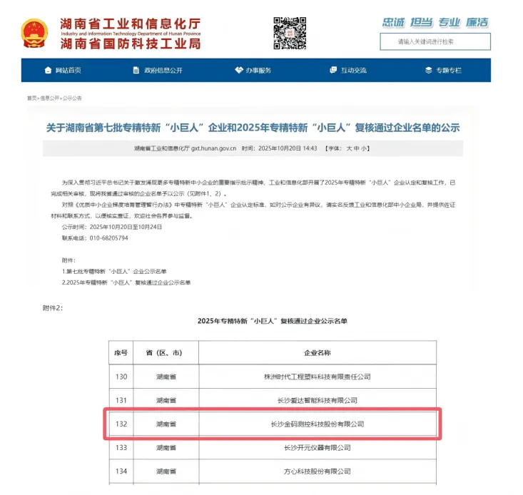 У жовтні 2025 року Міністерство промисловості та інформаційних технологій завершило процес перевірки підприємств «Маленького гіганта» 2025 року за класифікацією «Спеціалізовані, вдосконалені, диференційовані та інноваційні» та офіційно опублікувало список. Компанія Kingmach Measurement & Monitoring Technology Co., Ltd успішно пройшла сувору перевірку та повернула собі цю нагороду національного рівня завдяки своїм наполегливим інноваційним можливостям, професійній технічній силі та стабільним показникам на ринку.